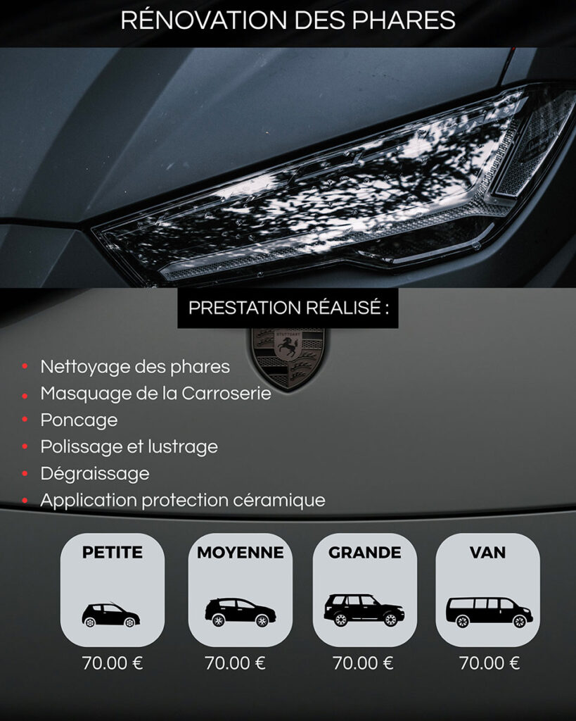 Alors, ne négligez pas la sécurité et l’esthétique de votre voiture, faites appel à Badri-Detailing pour une rénovation de phares professionnelle ! Notre équipe peut se déplacer à domicile, ou vous pouvez nous confier votre véhicule le temps d’une journée. En plus de la rénovation de phares de voiture, nous vous donneront également des conseils pour les entretenir et vous aider à les préserver.